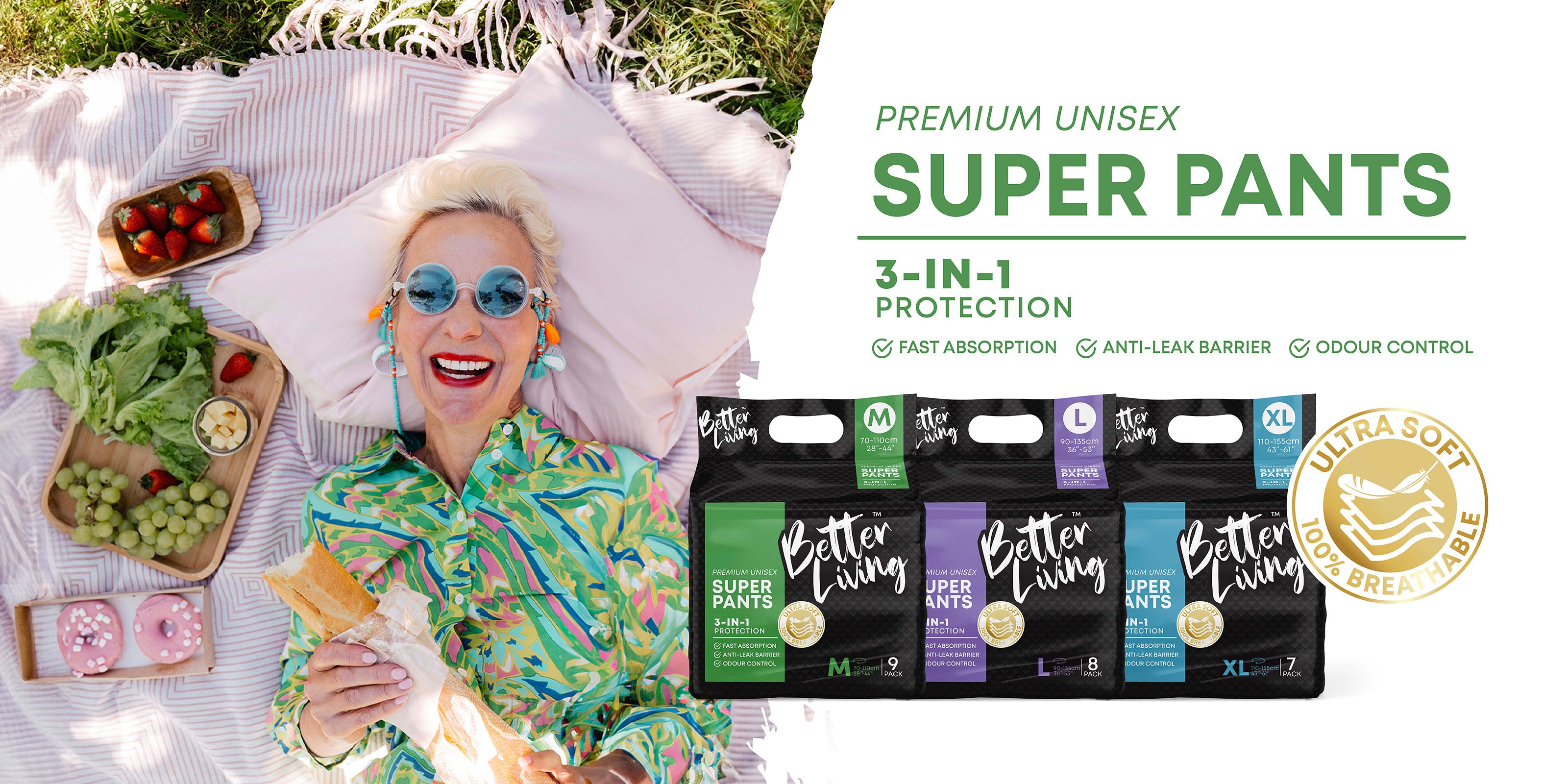 BetterLiving sanitary pads are extremely absorbent but very comfortable and are designed to fit to the shape of your body to hold securely in place and are suitable for even the most delicate skin.